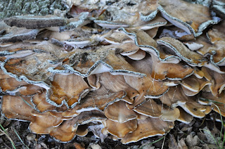 Fungi also have an important function in that they are the 'great decomposers of the environment'. They must be enjoying this time of year when the ground is thick with leaves, branches and mud. They can secrete enzymes and breakdown all the leaves, wood and animal decay on the forest floor. By living in their food they draw nutrients from the organic material and release nutrients and minerals back in to the soil to support new life.